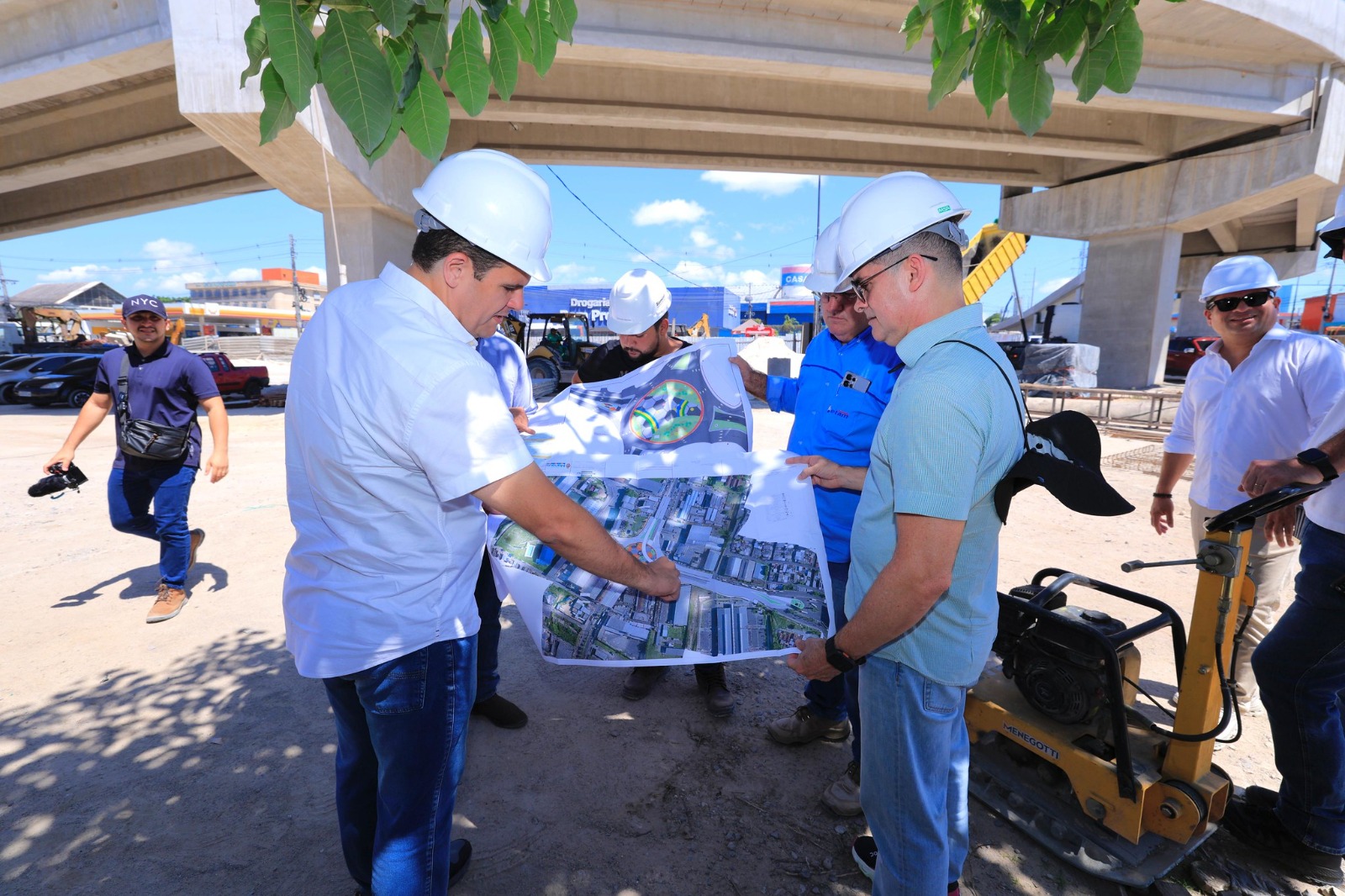 O prefeito de Manaus, David Almeida, e o vice-prefeito e secretário de Obras, Renato Junior, acompanharam, na manhã desta segunda-feira, 5/5, o avanço dos trabalhos no complexo viário Rei Pelé, na rotatória do Produtor, zona Leste. Com 95% da obra concluída, a estimativa da Prefeitura de Manaus é de entregar a parte física do viaduto até o dia 31 de maio, com inauguração completa, incluindo paisagismo e urbanização, marcada para 16 de junho.