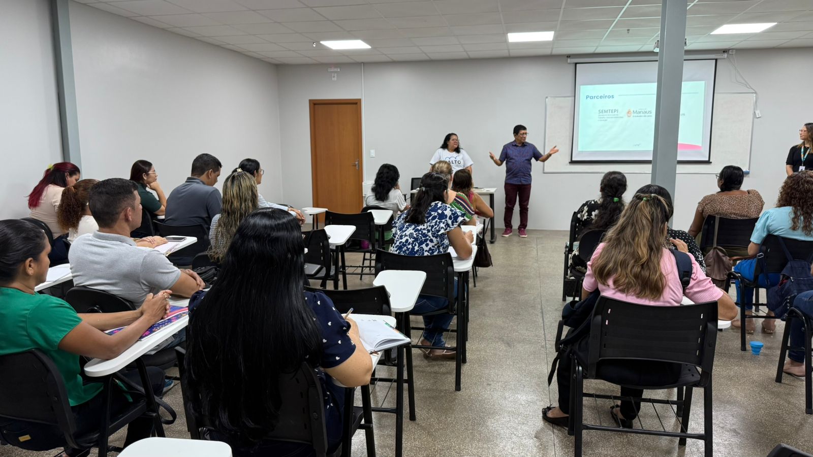 A Prefeitura de Manaus, por meio da Secretaria Municipal de Trabalho, Empreendedorismo e Inovação (Semtepi), em parceria com o Impact Hub Manaus, deu início às atividades do programa “Salto Aceleradora”. A aula inaugural foi realizada, na manhã desta segunda-feira, 23/6, no shopping Phelippe Daou, na zona Leste. O programa oferece capacitação técnica, mentorias especializadas e atividades práticas, distribuídas em turmas presenciais em diferentes zonas da cidade, com carga horária de 100 horas.