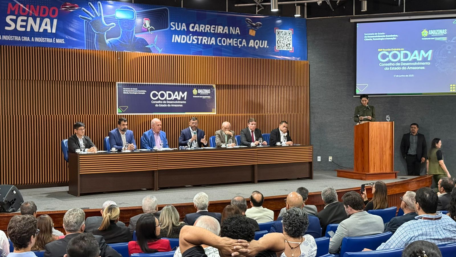 A Prefeitura de Manaus, por meio da Secretaria Municipal do Trabalho, Empreendedorismo e Inovação (Semtepi), participou, nesta terça-feira, 17/6, da 314ª Reunião Ordinária do Conselho de Desenvolvimento do Estado do Amazonas (Codam). O evento ocorreu no auditório do Serviço Nacional de Aprendizagem Industrial (Senai), localizado na avenida General Rodrigo Otávio, no Distrito Industrial.